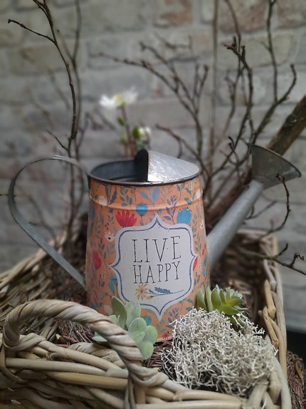 Plechová konev "LIVE HAPPY" 36x18x22cm