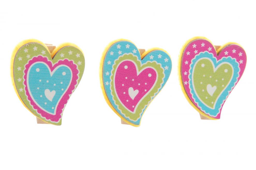 Sada 6ks kolíčků "VESELÁ SRDCE" 10x8/4dr