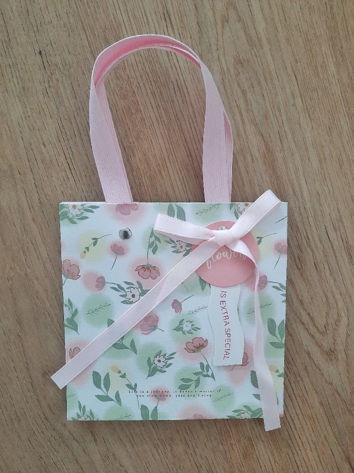 Dárková taška LUXURY je vyrobená z pevného kvalitního papíru, a to včetně oušek. U této dárkové tašky naleznete rovněž mašličku v růžové barvě. Sama taška je v jemných pastelových tónech růžové a zelenkavé barvy s drobnými zlatými konturami květin, což jí dodavá punc elegance. Tato taška se hodí na menší předměty pro svůj rozměr 14,5 x 14,5cm s dnem širokým 10cm, což umožní umístit dovnitř i třeba hrneček či malou hrnkovou květinu.